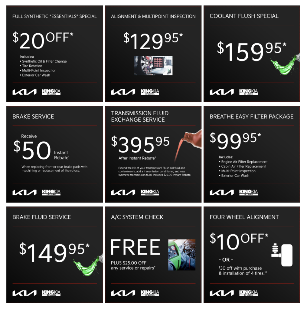 King Kia Of Laurel’s May Service Specials: