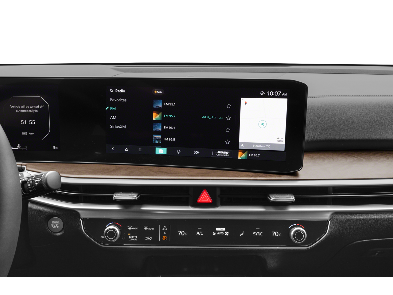 • Radio: AM/FM Bose Premium Audio System -inc: 12.3" ccNC touchscreen, navigation, HD Radio, Bluetooth® w/audio remote control, wireless Android Auto and wireless Apple CarPlay, voice recognition, Sirius XM, modem, Kia Connect, Wi-Fi hot spot, Over-The-Air Updates (OTA), 12 speakers including subwoofer, center channel, external amp and USB
