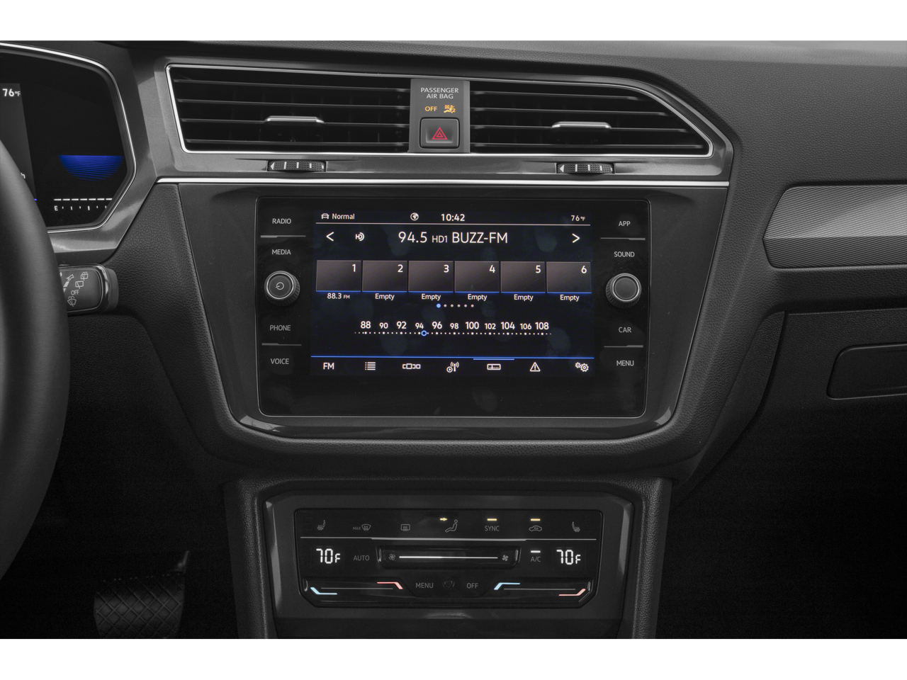 - Radio: MIB3 Composition Media AM/FM/HD -inc: 8" touchscreen, WMA/MP3/FLAC player w/USB-C, voice control, 6-speaker sound system, capability for in-vehicle 4G LTE enabled Wi-Fi (cellular data plan required; includes limited trial), capability for VW Car-Net services (capabilities for certain services vary; requires enrollment or subscription), Bluetooth® connectivity (for compatible devices), SiriusXM w/360L (w/3-month free trial subscription; 360L services require acceptance of Car-Net terms), App-Connect smartphone integration (w/Apple CarPlay, Android Auto and MirrorLink) via USB, Wireless App-Connect smartphone integration (for compatible devices) w/multi-phone pairing capability, 45W fast charging (for compatible mobile phones and accessories) via USB in first and second rows and Qi wireless inductive charger (for compatible mobile phones and accessories)